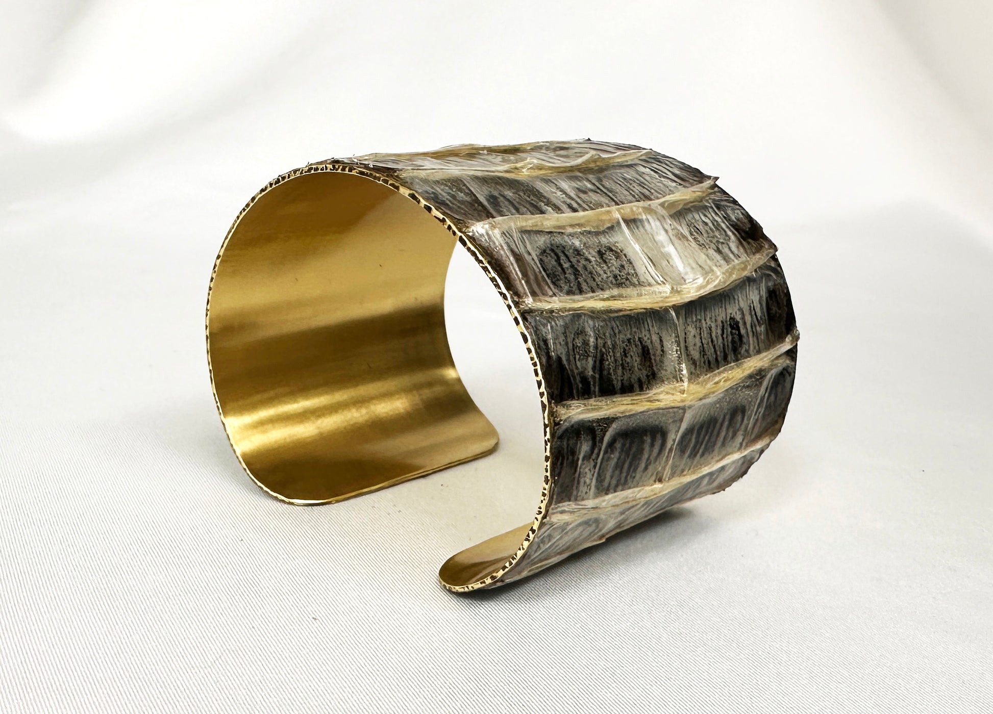 2" Antiqued Brass Snake Shed Cuff Bracelet (Eastern Indigo)